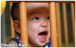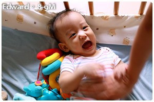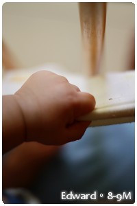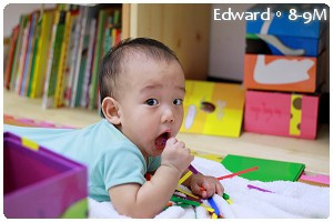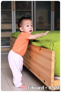 當然,9M的Edward 的進化可不止這個,最近兩個星期也學會了扶著站立囉!