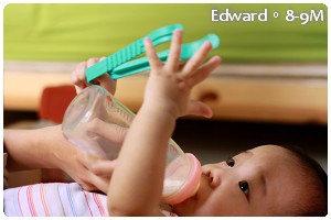 不過喝ㄋㄟㄋㄟ的時候塞個東西給Edward 玩,就會像吃食物泥一樣,不然喝沒幾口,頭就開始轉個不停,尋找有趣的事物,接著身體也會扭個不停。