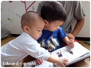 之前還想說,Edward 出生後,我們也要跟帶哥哥Aaron 一樣的方式,一樣"用心"帶Edward,