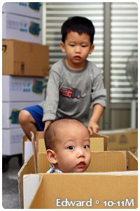 目前Edward 最令人頭痛的是穿衣服、換布布。