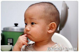 11M的Edward 不僅貪吃,而且食量還不小哦!現在每餐的食物泥大概是1碗半至2碗哦!