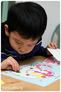 Aaron,晚上回家後也跟著我們一起貼貼貼