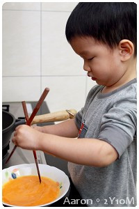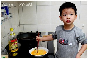 2Y10M的小人Aaron,喜歡湊熱鬧,現在只要Skyjon 與Kellynn 說要做飯飯或做家事,Aaron就會吵著要給他看,有時候還會吵著要幫忙。