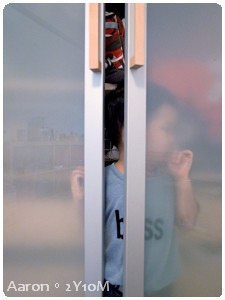 這個不是Aaron 做錯事被媽咪打屁股,而生氣躲著衣櫥裡不出來,也不是Skyjon 惡搞,把他關進衣櫥裡。