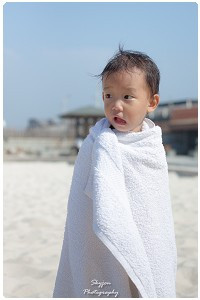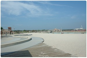 東石【漁人碼頭】的人工沙灘真的不小,非常的大,而且這裡的白沙顆粒比較大一點,比較不會黏在身上,輕輕拍一拍,就掉光光囉!很好整理!
