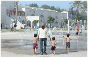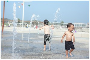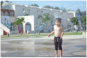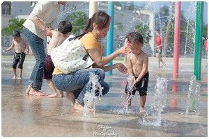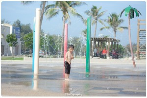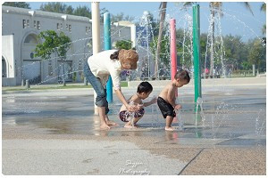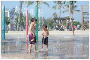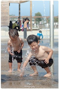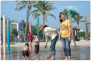 玩完沙子,Skyj媽就帶著三隻小豬(二白一黑,最黑的當然就是Edward嚕) 到旁邊的噴水戲水區玩水囉!