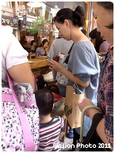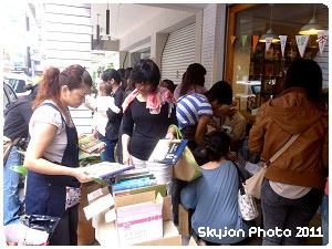 在人海中歷經了半個多小時的搶書行動之後,Kellynn 與Aaron 終於結完了帳,提著戰利品趕著緊離開恐怖的搶書活動。