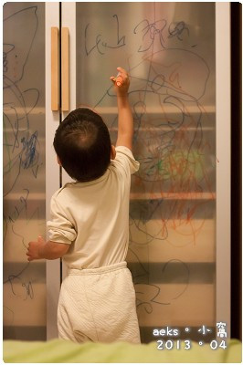 Skyjon 與Kellynn 對於小童們的"創作",採不干涉讓他們自由發揮,也不會硬是幫他畫的漂漂亮亮,只會陪他一同亂玩,隨意的亂塗鴉也滿好玩的