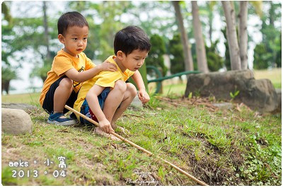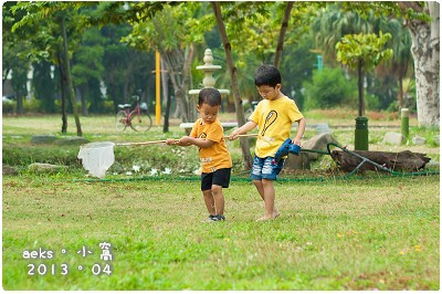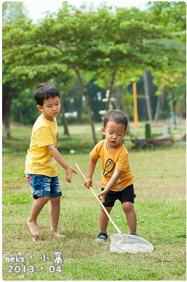 看到他們兩兄弟拿著網子的樣子,再加上Aaron 打著赤腳要去撈魚的樣子,就讓人想起小時候