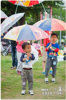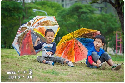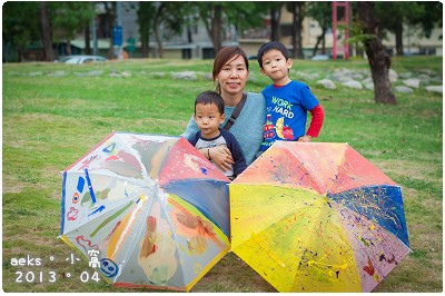 (ㄏㄏ,我家兩隻小人的雨傘畫,應該是最特別的,應該沒有人知道這兩支傘上的圖案到在畫什麼東西吧!)