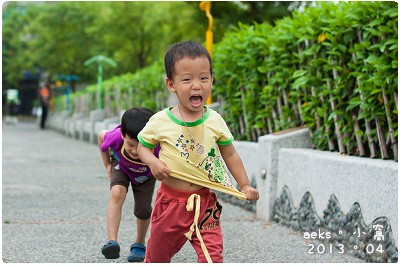 偶爾會與其它年紀相仿的小朋友一起玩遊戲,玩的樂不可支。