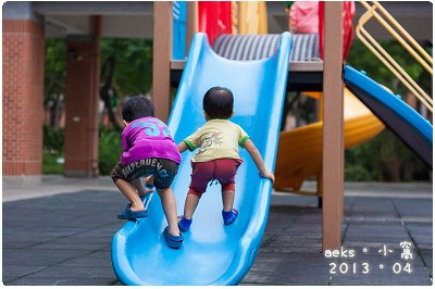 附近小學裡的溜滑梯上,有一個小斜坡,每次Edward 爬到這裡,都不太敢走,就吵著要人幫忙,牽著他走下小斜坡