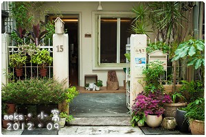 【小房子】有一個小庭院,有花花草草,還有很〝古錐〞的小木椅,整個感覺好像日本的小庭院