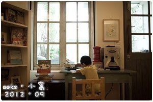 有時Aaron喜歡坐在門口窗戶的桌子畫畫(其實是亂塗鴨),這個地方也是Skyjon很喜歡的一個小地方,