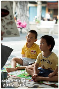 【小房子】的小管家說:讓他們習慣這裡的環境與氛圍,久了之後,就會慢慢的坐下來,與大家一起聽故事囉!