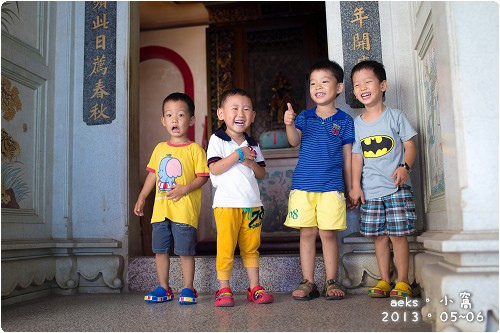 天氣熱,這四枚年齡相仿的小童們在廟埕前自己找出了樂子,也能玩得開心