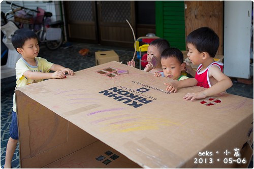 給小童們一個紙箱和一支蠟筆,儘量不去干涉小人,讓他們自由的發揮,自由的玩耍,他們將會比大人們陪玩還要更開心