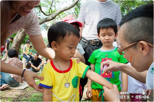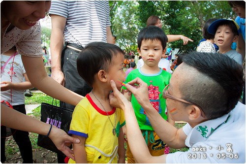 活動前,第一次被彩繪的Edward ,雖然不懂,卻也不若人後,搶著要去排隊