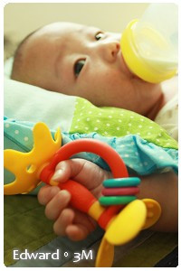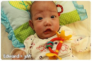 現在的Edward 已經可以"認得"我們,也能在我們逗他的時候,回應我們一個燦爛的笑容