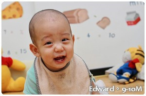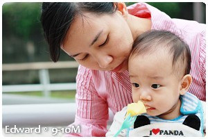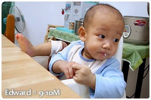 10個月大的Edward 除了喜歡亂咬東西,還好也挺喜歡吃東西。