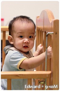 有次一個不注意,Edward 就爬到樓梯口,還好有Aaron 哥哥即時通報媽咪,不然