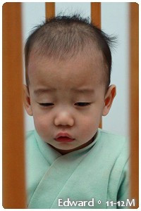 通常都是一轉動Edward 的房門,他就會準備"跳"起身來等人進門,很難得拍到Edward還是睡眼惺忪的樣子,好好笑~)