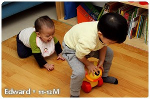 如果被大人們發現,出聲喝止,Edward就會停坐下來,轉身看看,露出被抓包的笑容和嗤嗤笑聲