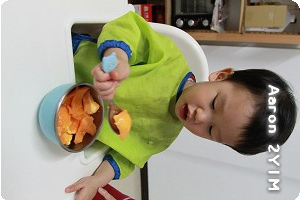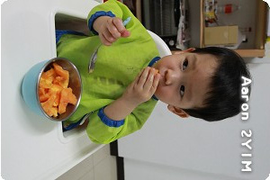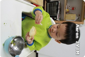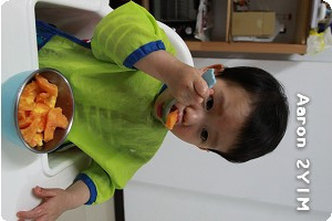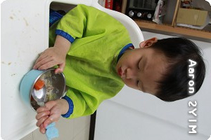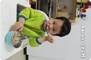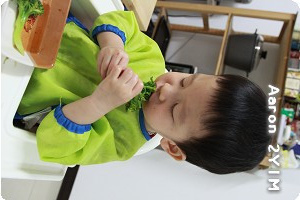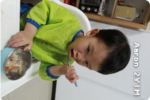 不過幾天下來,我們發現Aaron 的食量變大了,超會吃。