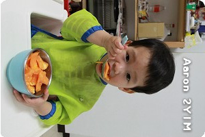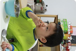 不然,就是Aaron在幼稚園的活動量大,很快就把中午的午餐與下午的點心給消化掉了。