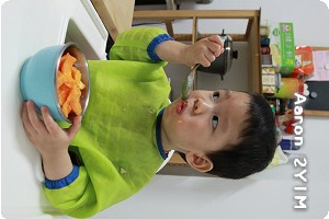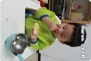 最近Aaron 下午四點多從幼稚園回到家之後,就常常因為肚子餓吵著要吃東西。