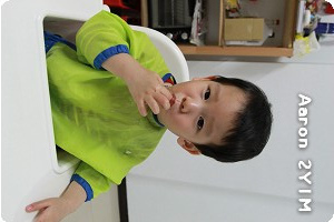 3月份某天Aaron 從幼稚園下課回到家,跟媽咪打個招呼撒嬌一下,洗個手。