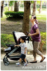 2Y8M的Aaron愈來愈有哥哥的樣子了,出門散步會幫Kellynn推推車,也會走在推車的旁邊,幫忙看著弟弟的狀況。