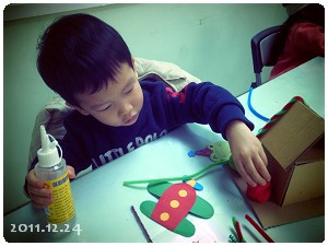 開始很認真的拿了膠水、紙卡...東黏黏西貼貼