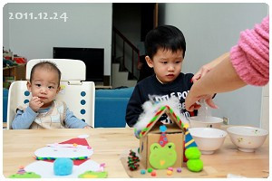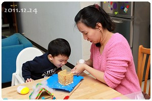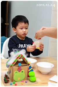 (還好,做到這邊,已經沒有人打算吃這個薑餅屋,就讓Aaron 自己隨性吧)