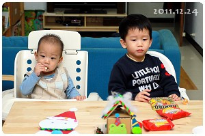 我們家的兩個"大少爺"晚餐後就定位,先各發兩片餅塞塞小人