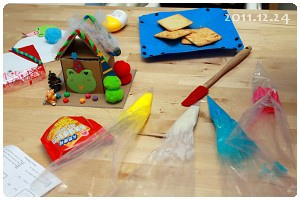 最後用了一大坨的糖霜,才把東倒西歪的小屋子黏好