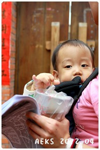 第一次用背帶,背著小人兒Edward出門遊玩逛老街,感覺Edward還挺享受的