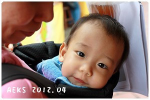 倒是平常對太熱鬧人太多會有些怕怕的Aaron,這天卻老神在在地坐在推車上看風景,啃著餅乾