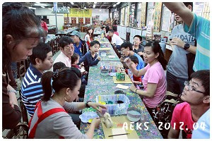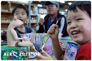 一堆大人兒與小人兒在〝ㄚ箱寶〞DIY彩繪塗鴉同樂