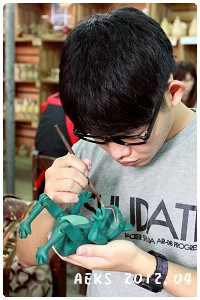 首先,先幫〝細卡仔〞塗上底漆 (Aaron 居然選了黑色,大家都說這是隻非洲蛙,黑不嚨咚)
