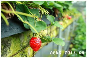 架高的草莓園,採起草莓挺方便輕鬆的,不需彎腰就採的到。