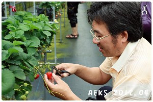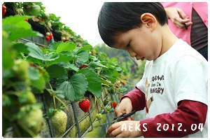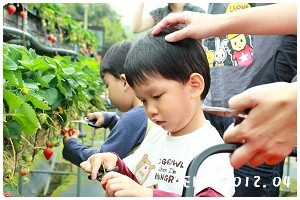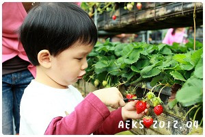 沒想到,小人兒Aaron拿起小剪刀採草莓的手部動作還挺靈活的,小剪刀控制的很好。
