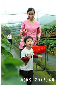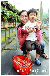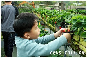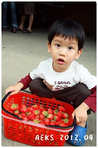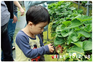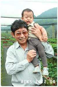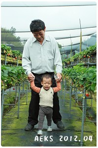 才1Y3M的Edward還太小,不能採草莓,只能在草莓園裡跟阿公玩。