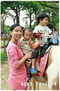 小表弟也一起騎3圈,只是騎了3圈後,這馬兒看起來有點疲倦了。