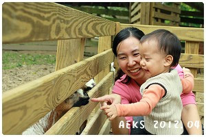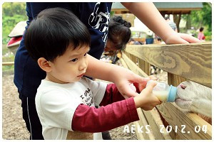 Aaron 真的很有愛心,拿著裝著牛奶的奶瓶四處找羊餵,幾乎每一隻柵欄邊的小羊都被他餵過了。