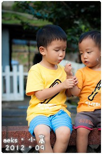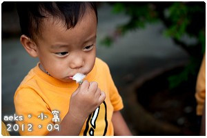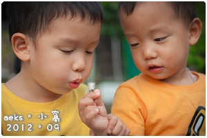 (Aaron與Edward平常就喜歡吹泡泡,知道蒲公英的玩法後,兩兄弟都搶著要玩,兩隻小人吹蒲公英的表情超可愛的啦!)