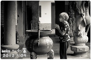 到內參訪,剛好有位和靄的老婆婆到廟裡參拜,剛好按下快門,記錄下此畫面