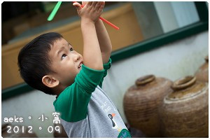(還不太會玩的Aaron,剛開始玩竹蜻蜓的時候不是飛不起來就是打到自己,後來多練習了幾次之後就好多了)