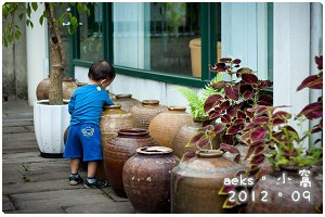 第二天早上,小人兒早早就起床,下樓到民宿的前庭跑跑跳跳