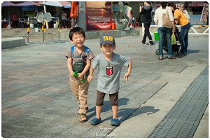 反而,小Aaron三個月的堂弟Rain有點害怕,不太敢玩,只敢在原地玩玩小噴泉